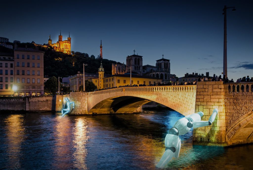 Description de l’action : Sculpture allégorique autour des enjeux environnementaux : ultime rempart contre la puissance des éléments, un couple de mannequins retient les piles de l’édifice semblant menacé par la montée des eaux. Les pieds dans l’eau, le duo mis en lumière incarne toute la fragilité du bâti et des hommes face à la nature. Un film d’animation de quelques minutes sur la thématique des inondations et du transport fluvial vient compléter l’œuvre et permet d’apporter des connaissances sur ces sujets de manière ludique et accessible.